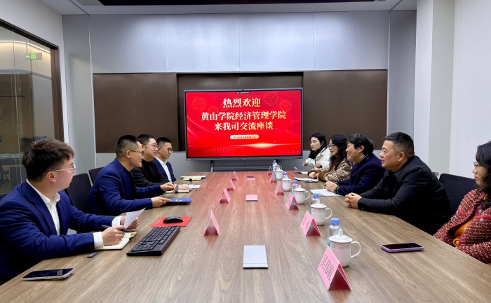 在申万宏源证券有限公司黄山市营业部,双方围绕人才培养、实习就业、产学研合作等方面展开了探讨。总经理张新详细介绍了公司情况、行业发展趋势以及企业对人才的需求特点,强调了实践能力和综合素质对于经管类专业学生的重要性。吴敏向企业重点介绍了经济管理学院的专业设置、人才培养模式、学生的就业意向等情况,表示希望通过与企业的深度合作,为学生提供更多实习实践机会,培养出更符合市场需求的高素质人才。