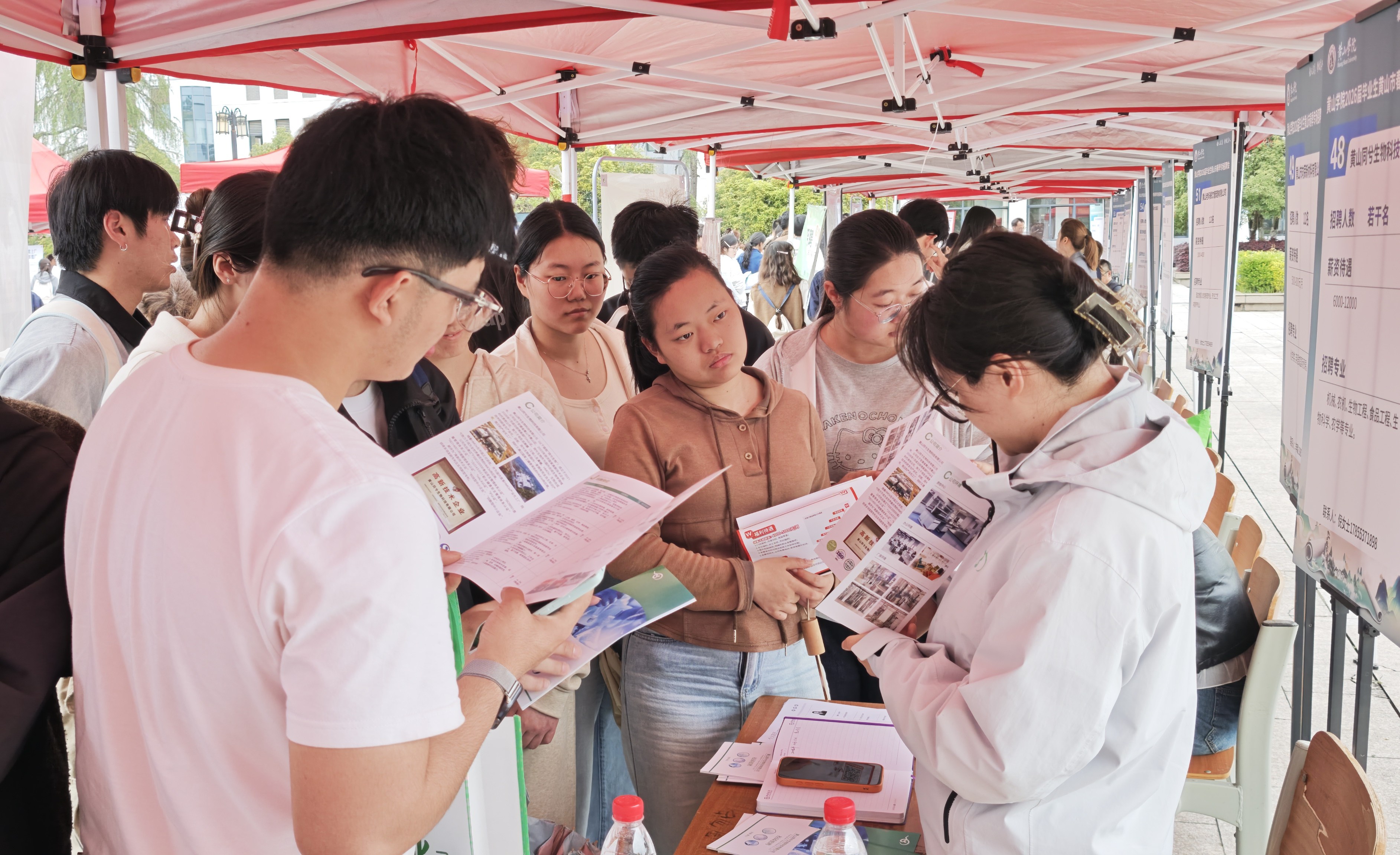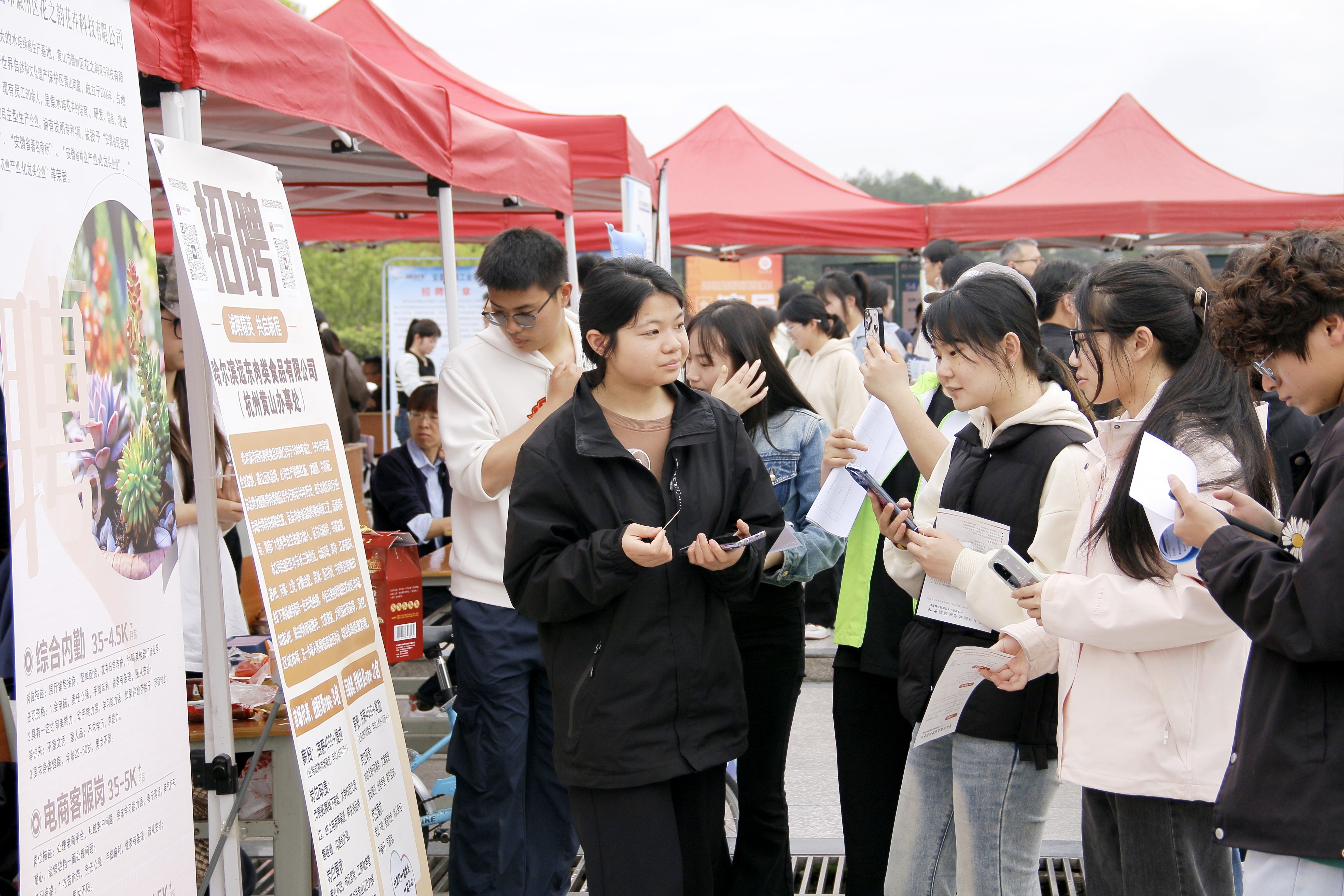 4月15日下午,我校在率水校区徽文化广场举办2026届毕业生黄山市春季专场招聘会。校党委副书记刘力,相关职能部门负责人、各学院党委副书记、毕业班辅导员及2026届毕业生参加双选会。